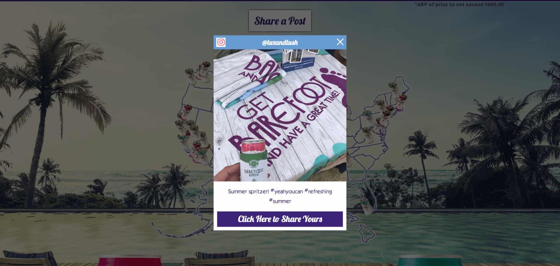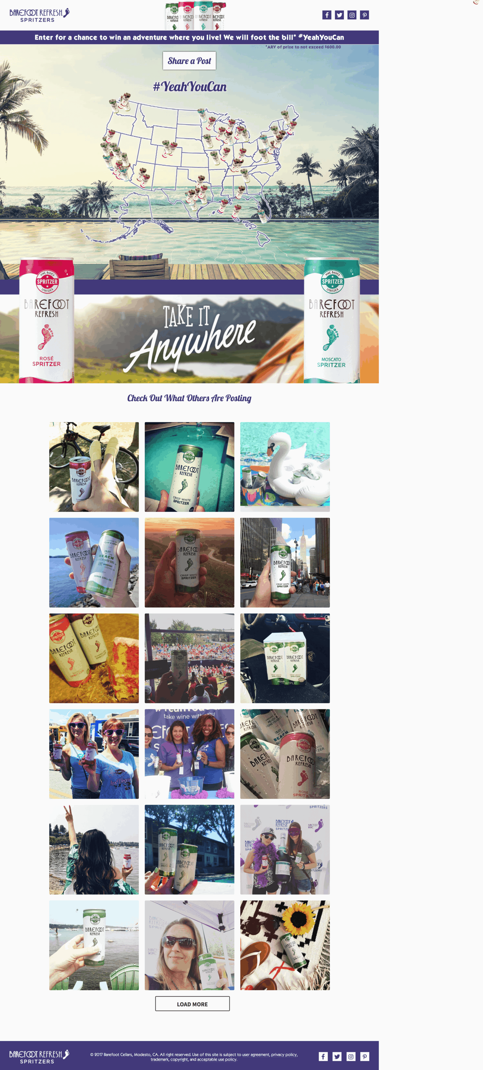 Barefoot Wines deployed a digital heat map style experience to promote the release of new canned spritzer varietals for summer. Influencers and consumers created Instagram posts showcasing how & where people were enjoying the new spritzer flavors. A visual map displayed highly curated posts across the US in addition to a full social gallery of photos incorporating the campaign hashtag.