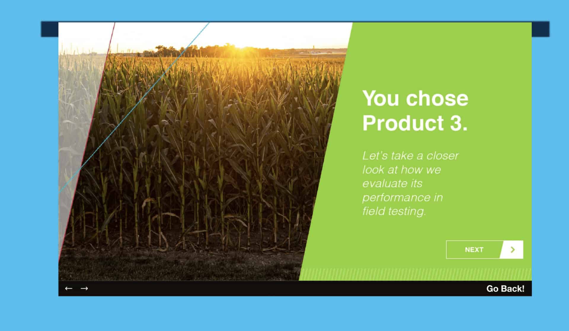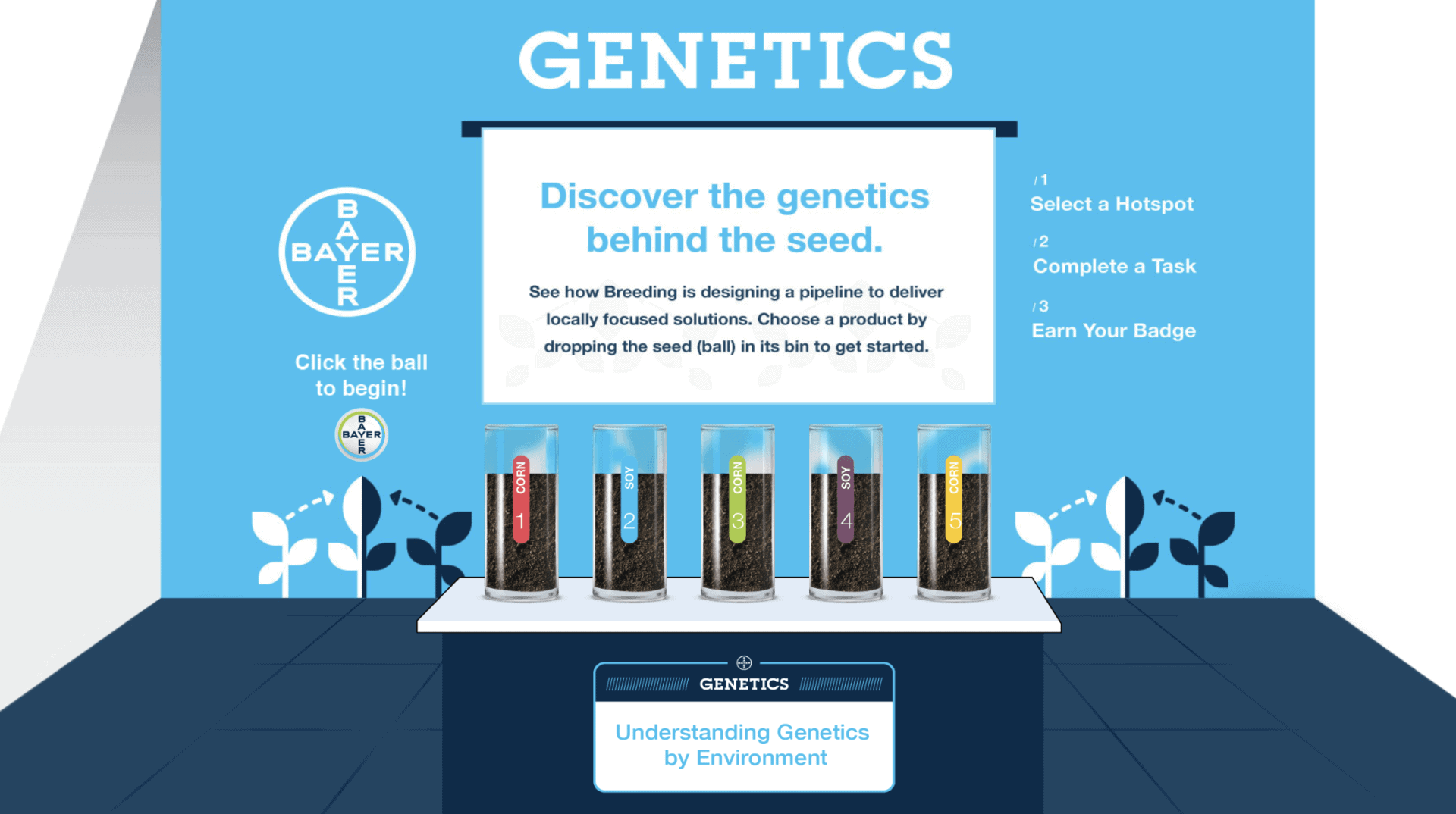 Within a virtual trade show booth, Bayer Genetics provided attendees an interactive opportunity to engage and learn about products through a ping pong ball toss.