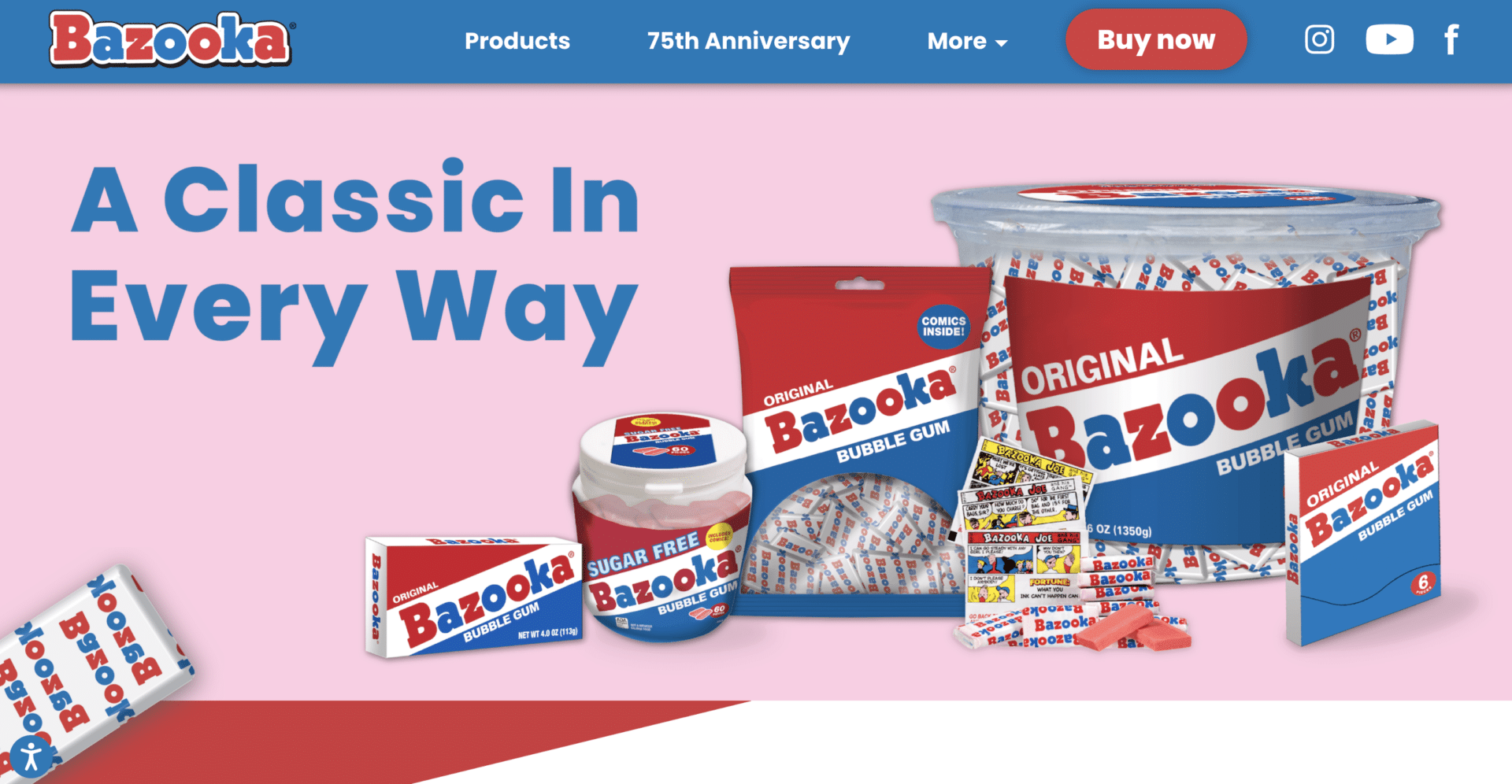 In celebrating the rich legacy of Bazooka Bubble Gum, the brand launched a new website upon it’s 75th anniversary, which synthesized a modern aesthetic with a distinguished, nostalgic heritage. Site encompassed content, products and digital video game arcade.