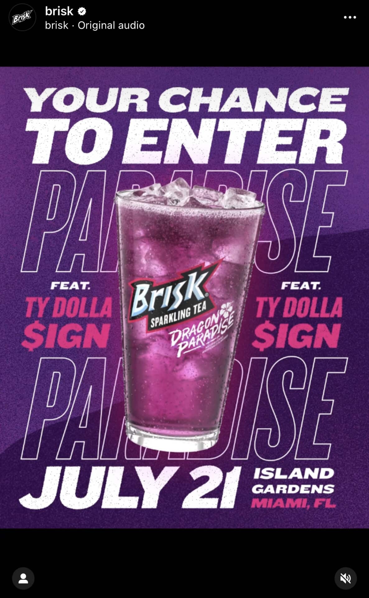 In celebration of Brisk’s newest sparkling tea flavor Dragon Paradise and in conjunction with the brand’s partnership with the Rolling Loud music festival, PepsiCo offered consumers a thrilling opportunity to win tickets to the 4-day Rolling Loud Festival in Miami, FL. Select fans gained VIP access to Enter Dragon Paradise event featuring exclusive performances and Brisk inspired experiences.
