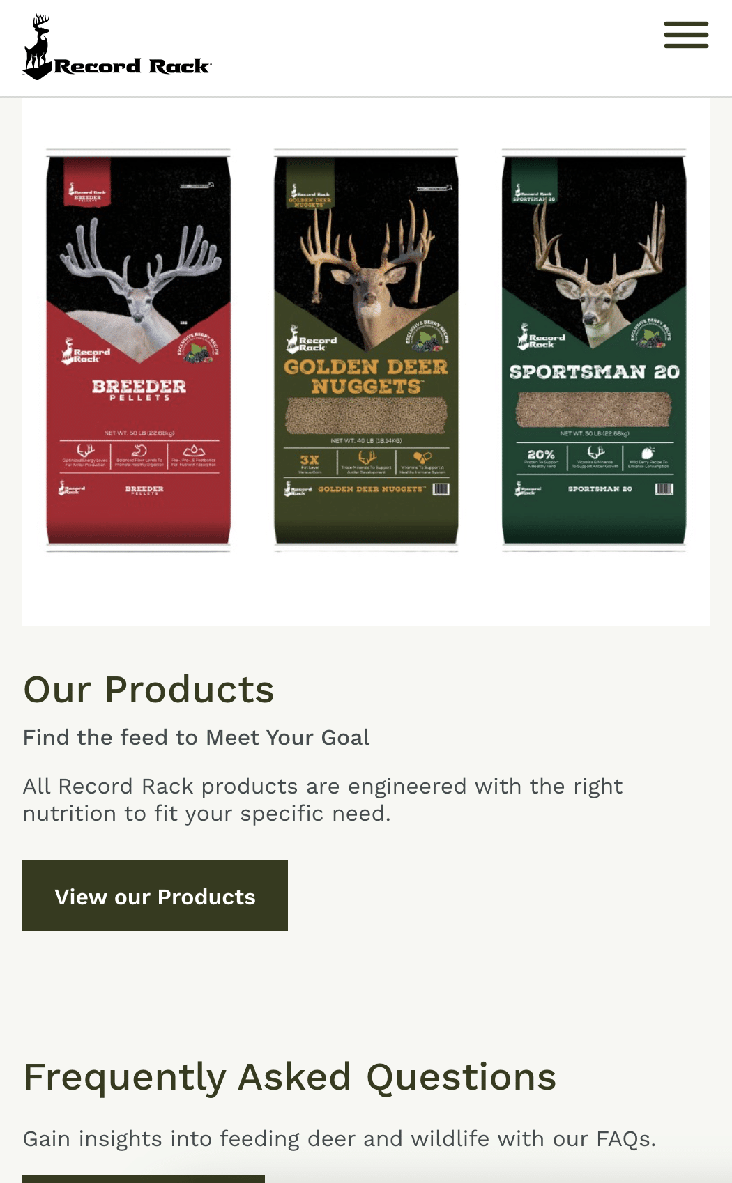 Record Rack, a division of global food conglomerate, Cargill, which provides feed and nutritional products for wild deer to support naturalists and hunters.