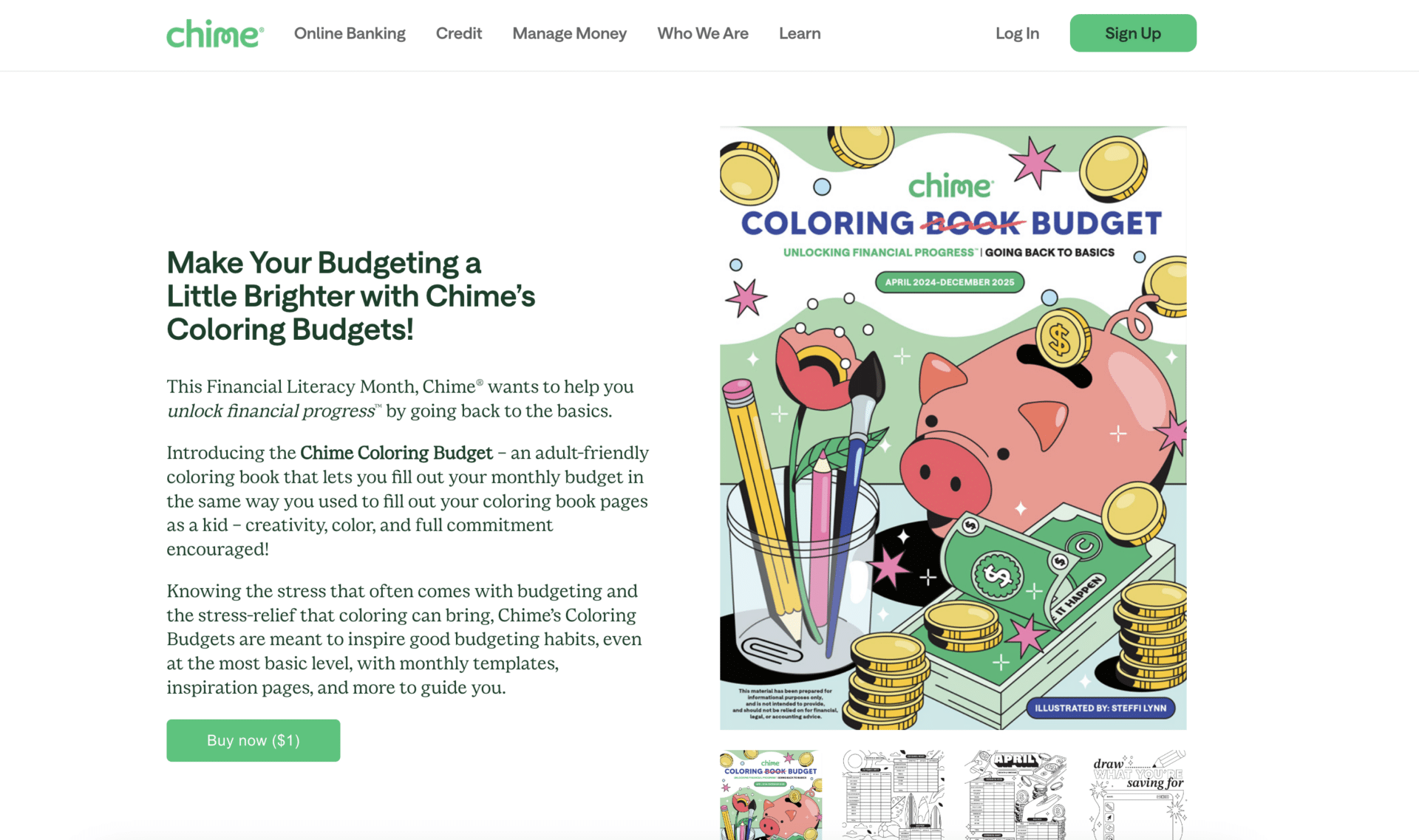 To celebrate Financial Literacy Month, Chime advocated and inspired financial education while infusing fun and creativity through offering consumers a Chime Coloring Budget, which intended to make learning about finances approachable, enjoyable and actionable.