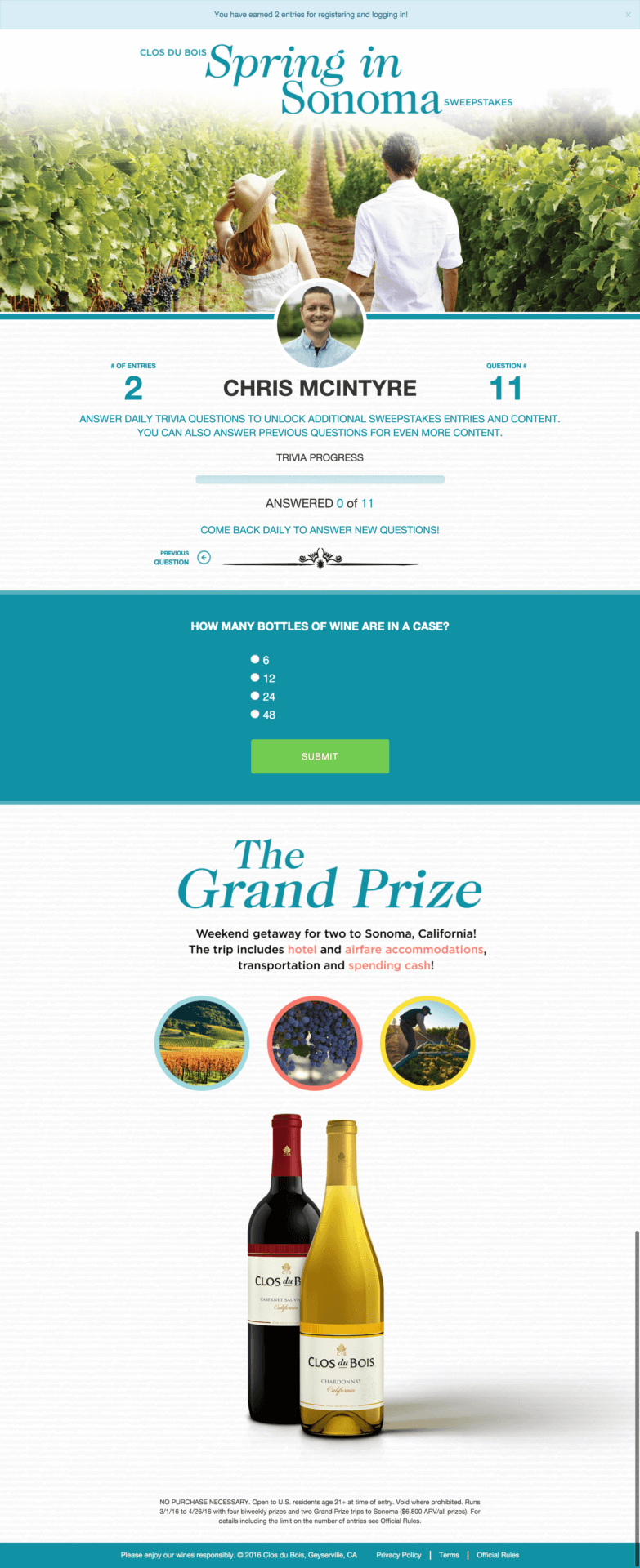 Clos offered consumers a daily trivia experience in which participants could answer a unique brand-related question each day over 8 weeks. Every trivia attempt revealed bonus content in the form of recipes and entertaining tips.