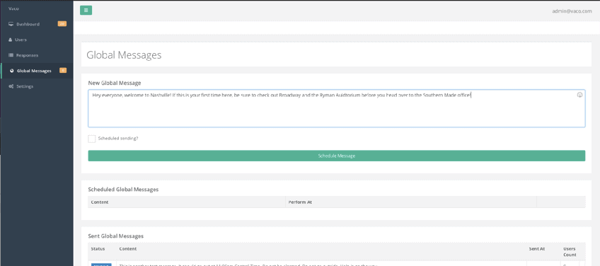 Vaco commissioned the creation of an innovative concierge chatbot to deliver a highly personalized experience for the company’s top performing global sales teams during a national sales retreat. Users could request anything during their resort experience via SMS, which was fulfilled through a series of both automated and manual communications. The platform was utilized to offer surprise & delight items such as digital gift cards, scheduled reminders and group communications