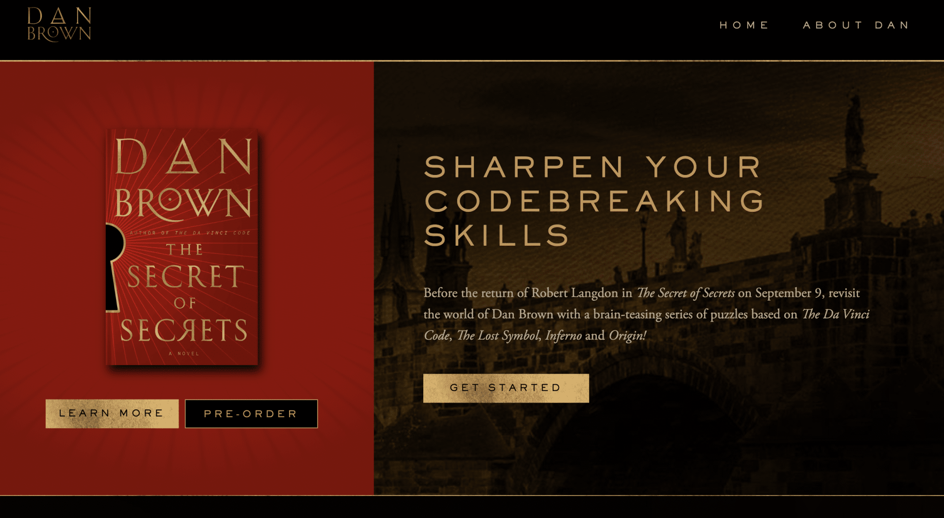 Unlock the Secret is an interactive digital experience launching Dan Brown’s The Secret of Secrets. Fans solve immersive puzzles inspired by his bestselling thrillers, driving global engagement and pre orders ahead of the book’s release.