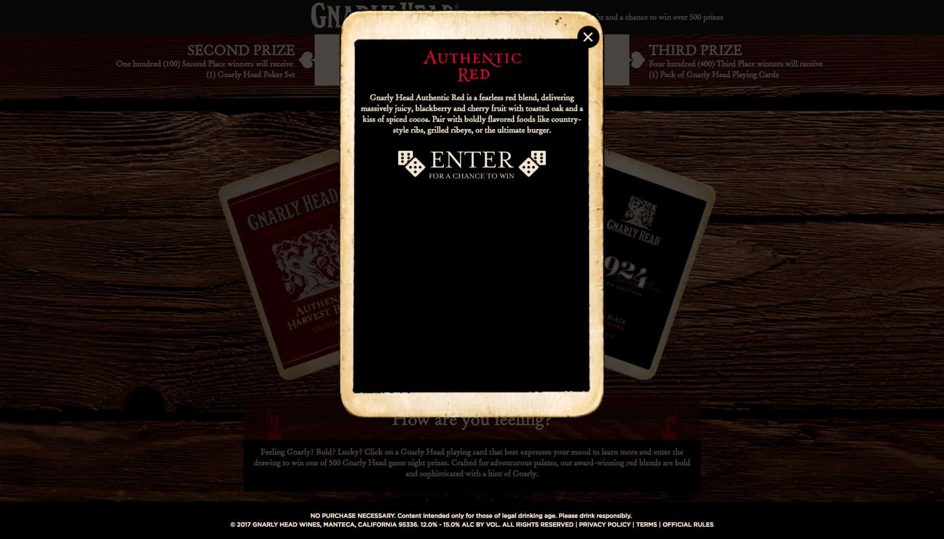 Gnarly Head Wines introduced an interactive card themed sweepstakes in which consumers participate to win custom poker sets to host a game night.