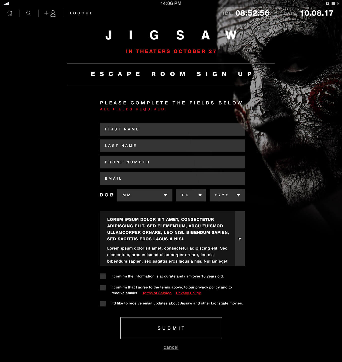 Engineered a customized reservation app to support the Jigsaw Escape Room game activation taking place at New York Comic Con which facilitated the registration process / data capture and allowed media & influencers instant VIP access and bypassing the line.