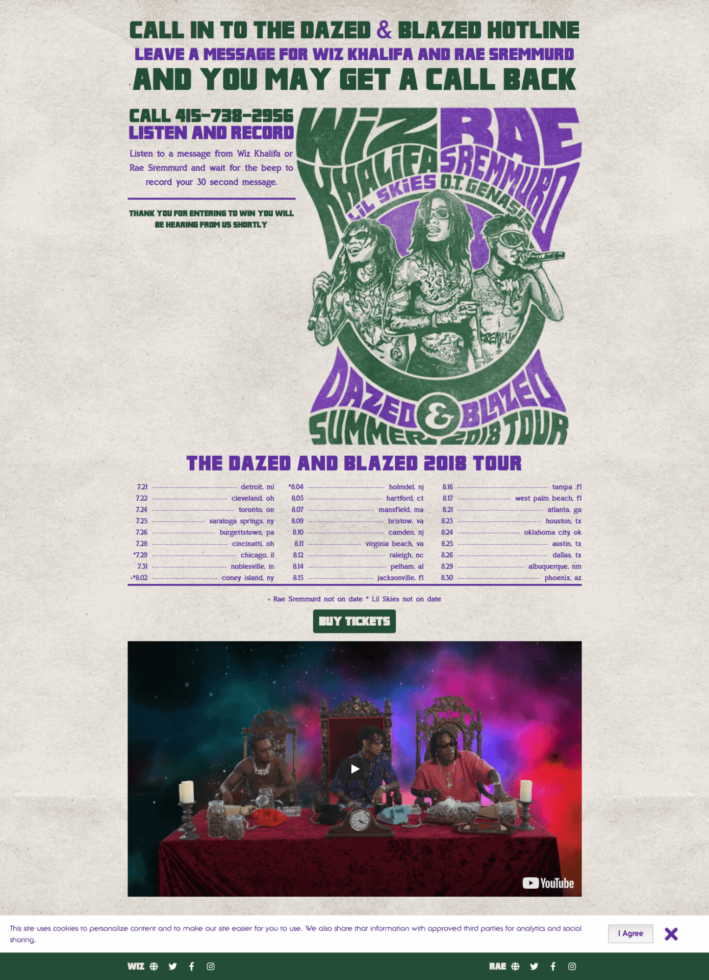To promote the Dazed and Blazed Summer Tour, fans could call into a hotline to listen to a message from Wiz Khalifa or Rae Sremmund, and leave a message for the two. Selected fans were called back by Wiz and his tour mates.