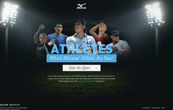 Mizuno deployed a fun digital quiz incorporating the brand’s sponsored athletes in which fans answered a series of questions in order to determine which athlete’s success, profile and attributes best aligned with each fan. Results were delivered in a shareable image.