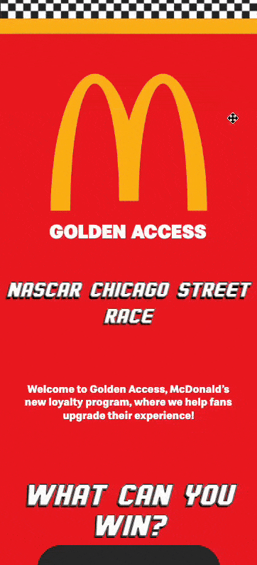 In celebration of the first ever NASCAR Chicago Street Race, partner and founder of the race McDonald’s, commissioned an interactive experience that allowed fans to win prizes in real-time at the event.