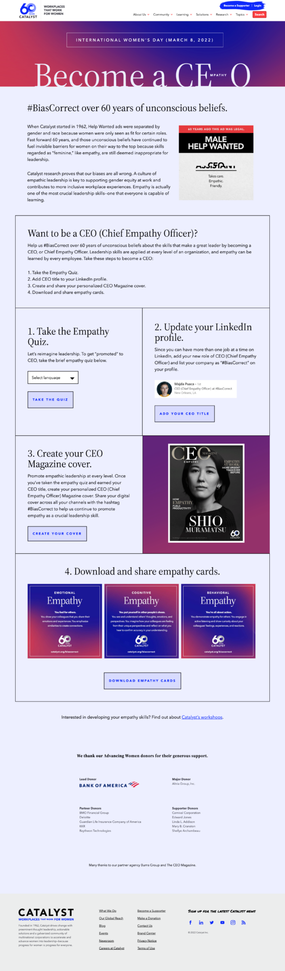 Launching in advance of International Women’s Day, Catalyst deployed an international digital experience enabling consumers to create a customized magazine cover of CEO magazine and celebrate their role as Chief Empathy Officer.