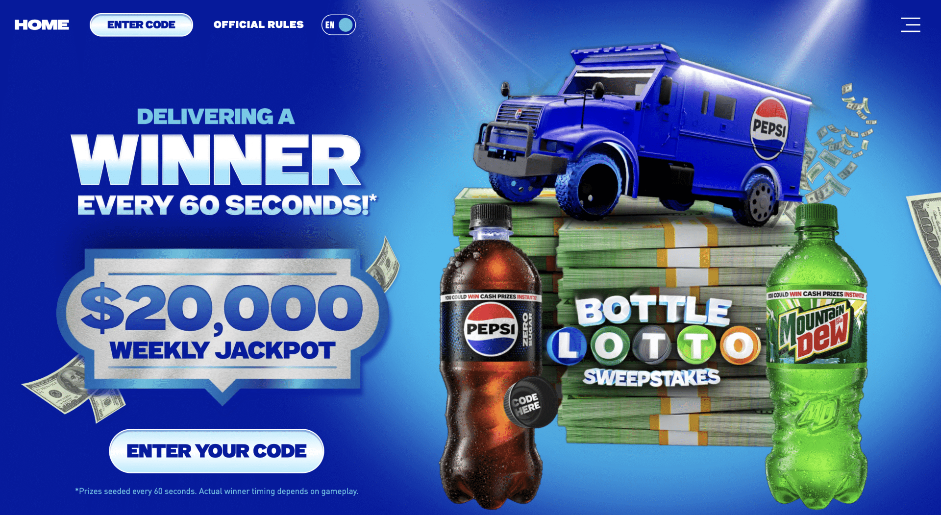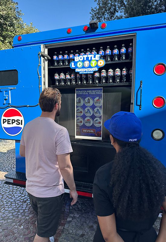 Bottle Lotto is more than a screen, it’s a chance to win big in the real world! Two custom armored trucks traverse the country offering a unique mobile activation complete with an instant win and photo moment. Each wrapped in bold Pepsi and Mountain Dew branding, where at every stop, consumers receive a secret code for an instant chance to unlock the door and claim the prizes inside!