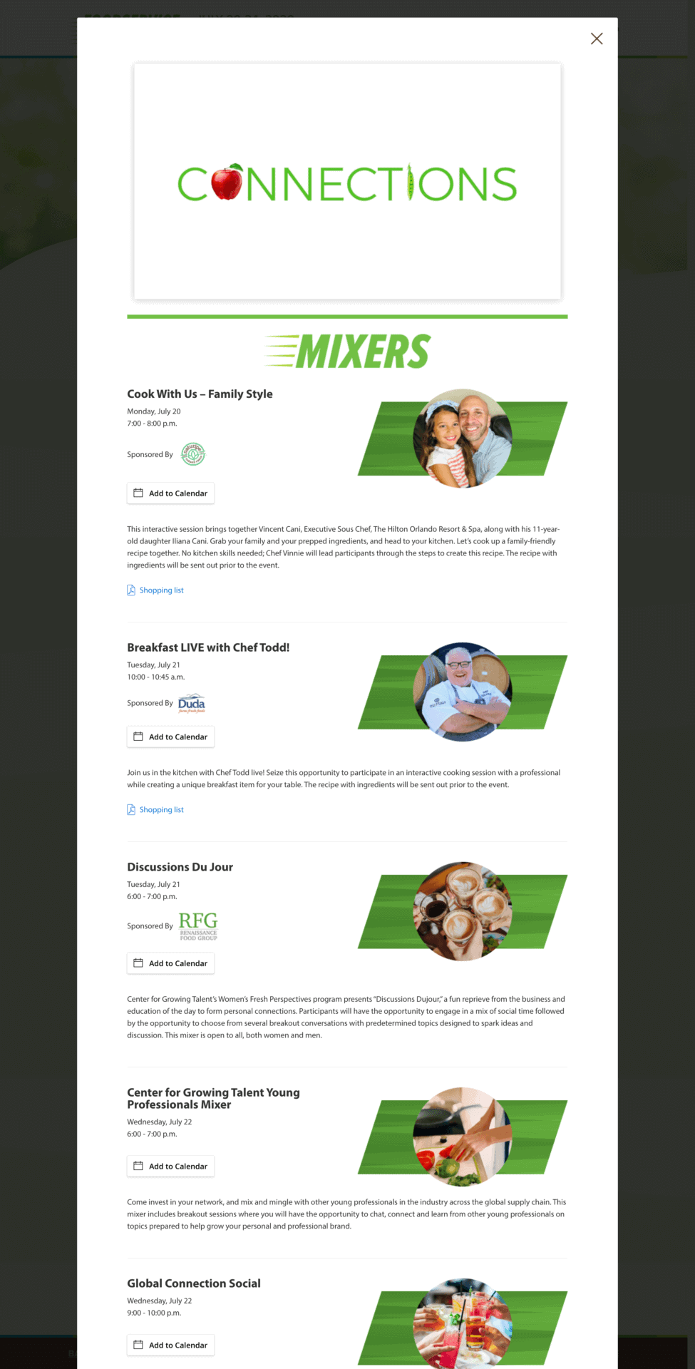 Under a highly compressed timeline, PMA and its partners created and deployed a community microsite to provide engagement and interactivity for attendees of the organization’s annual Foodservice Delivered conference.  Within the digital hub, attendees could: complete a personality quiz that recommended specific conference sessions, access daily mixers with shopping lists, participate within a digital scavenger hunt and view a content library of relevant resources.