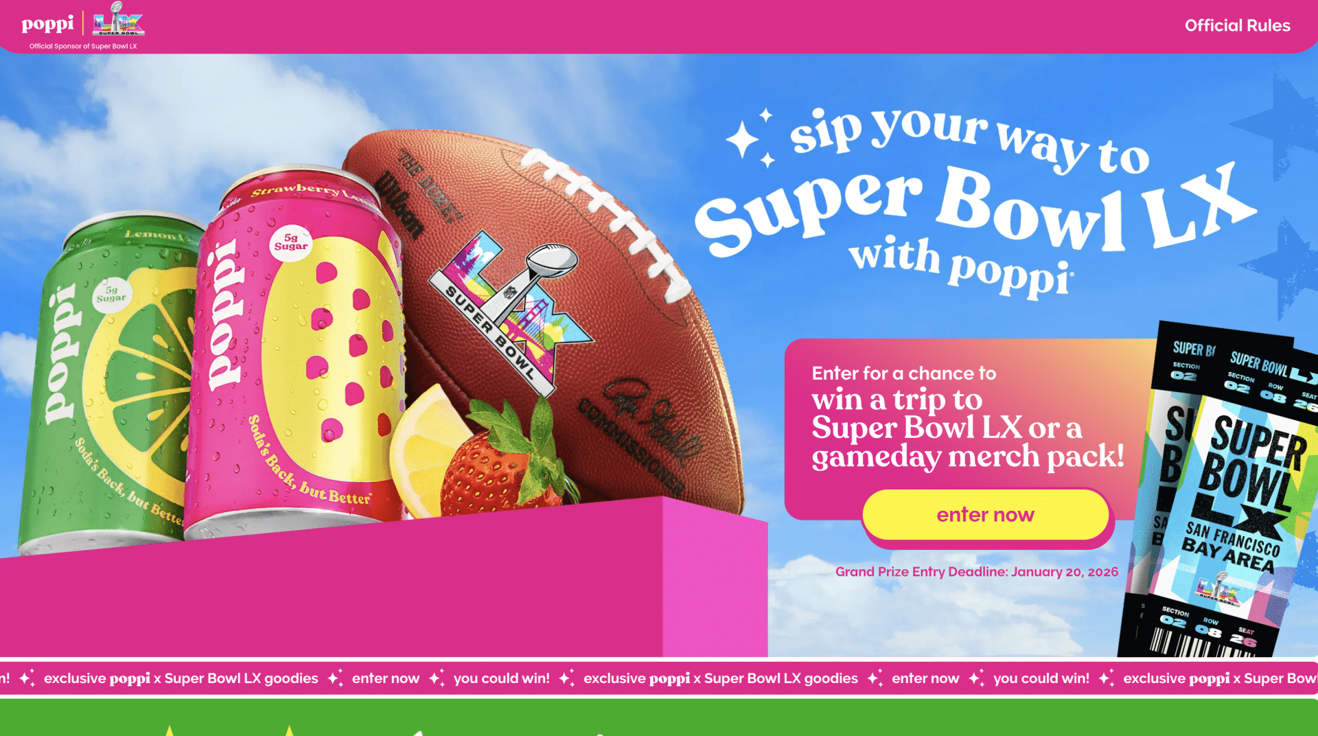 Poppi brought the Big Game energy to life with a bold, fan-first digital sweepstakes that tapped straight into football fever. By blending easy entry with high-stakes excitement, the campaign drove buzz, fueled participation, and positioned Poppi as a must have drink for Super Bowl celebrations.