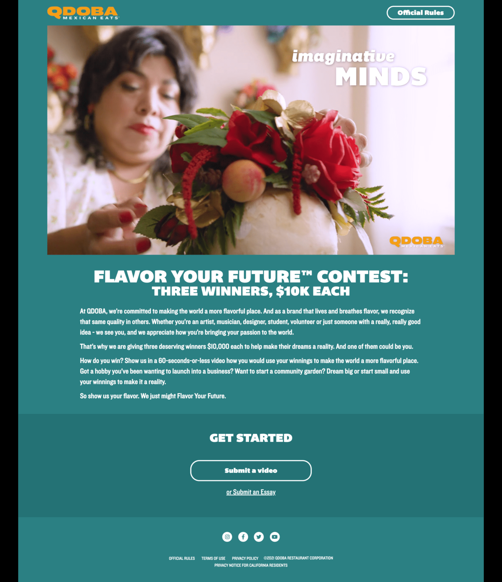 Qdoba launched a North American UGC contest inspired by the brand’s new flavor centric emphasis where consumers were inspired to submit a video or essay illustrating one’s desire to infuse their passion into the world.