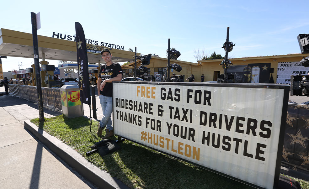 To celebrate and reward our every day “hustlers”, Rockstar Energy created a fully branded Hustler’s Station which provided free gas, encouragement, and nourishment to rideshare drivers.
