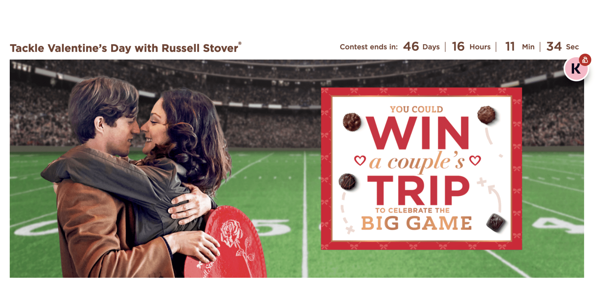 Russell Stover is putting the romance back into Super Bowl, by offering consumers an opportunity to win a trip to next year’s big game.