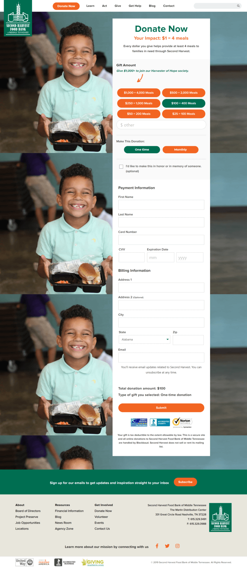 To capitalize upon peak donation season, Southern Made was honored to partner with Second Harvest Food Bank to enhance their efforts to feed and combat the issue of hunger in our community through the creation of a modern website. From strategy, user experience, development, and ongoing SEO our team is a long term ally in this critical mission.