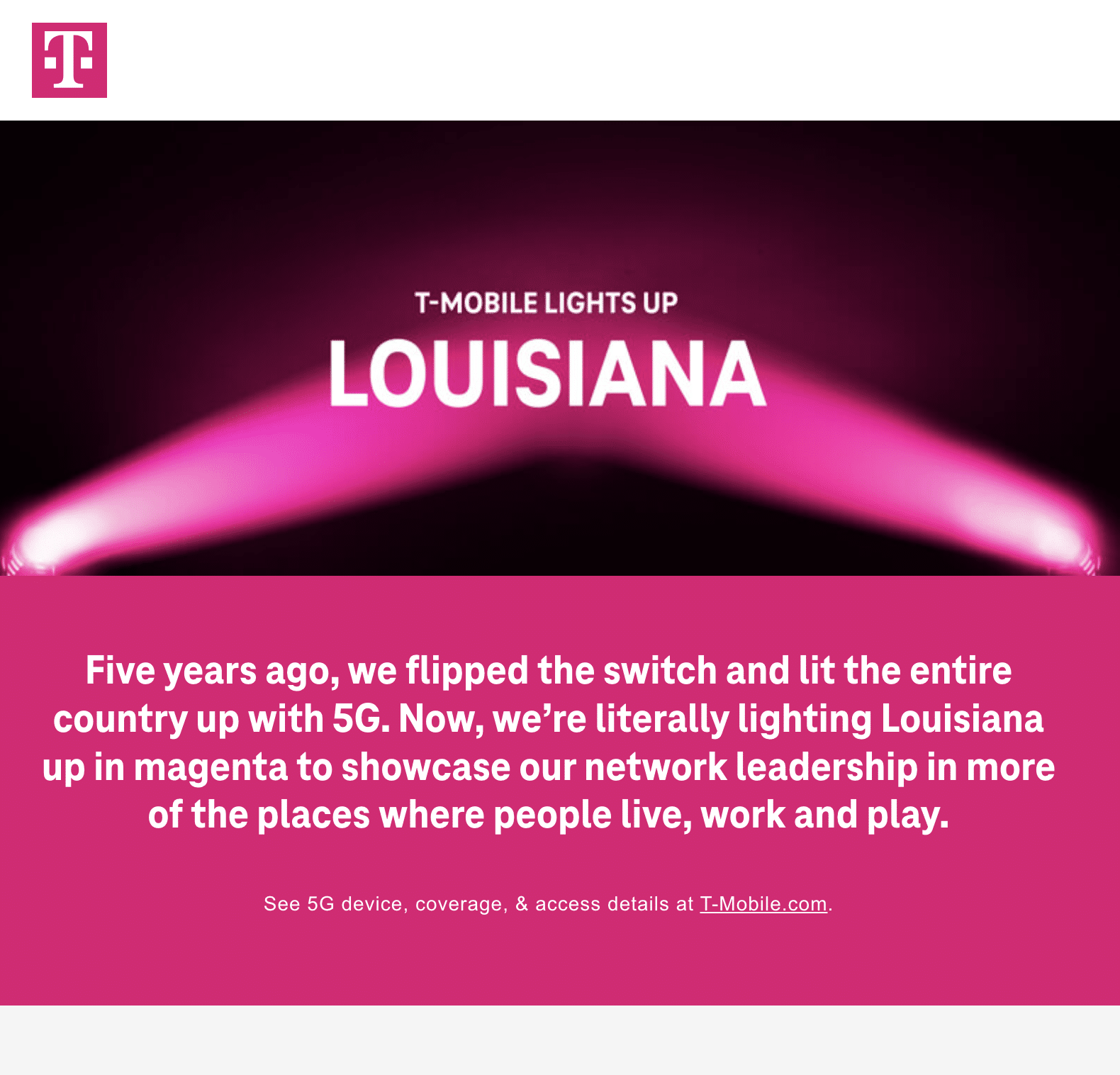 To commemorate the achievement of T-Mobile’s rapid advancement of wifi coverage across the entire state of Louisiana, the brand executed a localized promotion allowing consumers opportunities to win new phones.