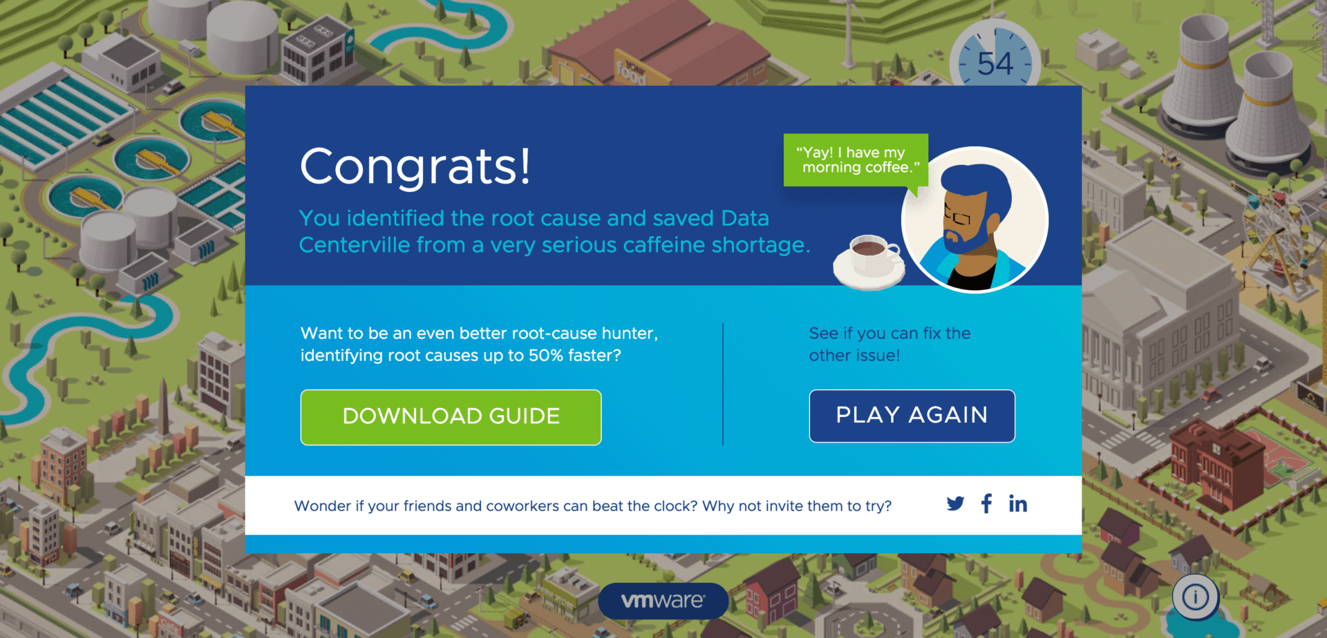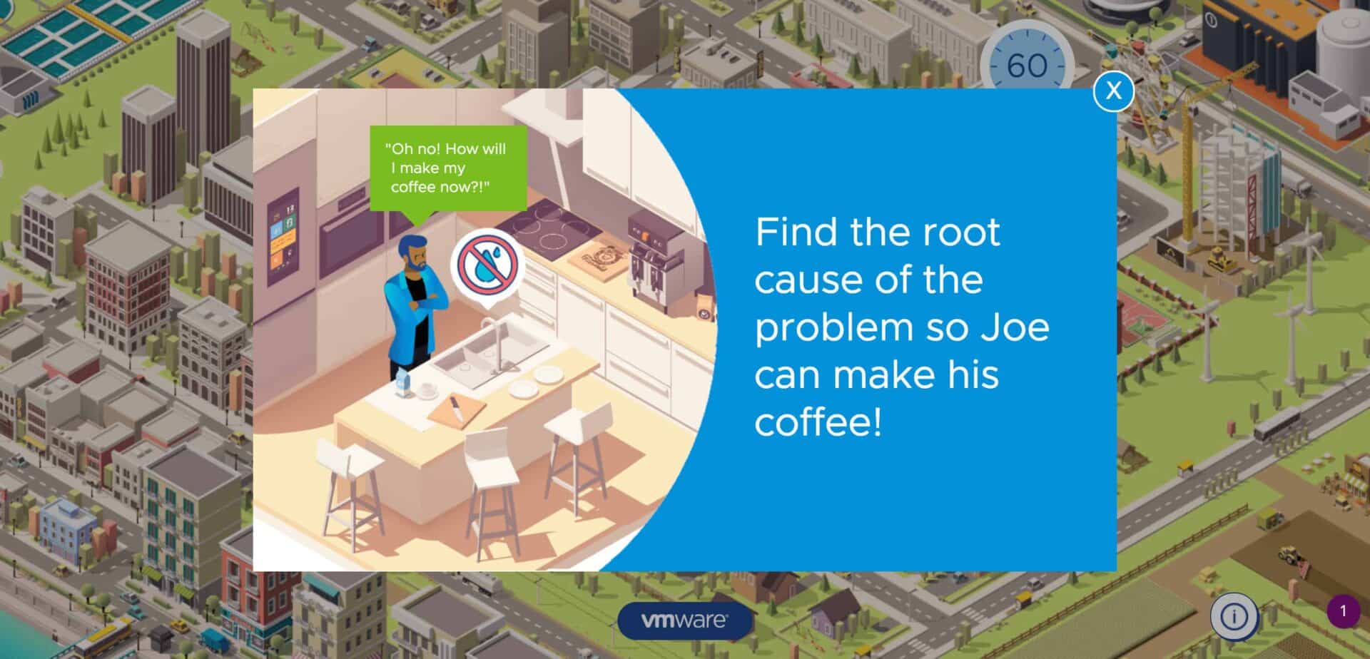 As a creative and entertaining approach to engage potential customers, VMWARE launched an interactive Minute to Fix It experience where participants were challenged to find a resolve an electrical or plumbing issue hidden within the critical infrastructure of a city landscape.